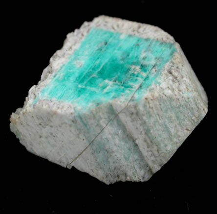 | Description: | Single crystal of blue-green amazonite, the variety of microcline feldspar colored by trace lead impurities, with whitish outer layer of colorless microcline. Amazonite from Black Cap is exceptionally rare. Ex. Thomas A. Penney (1934-2019) collection, collected in the 1960s-70s. |