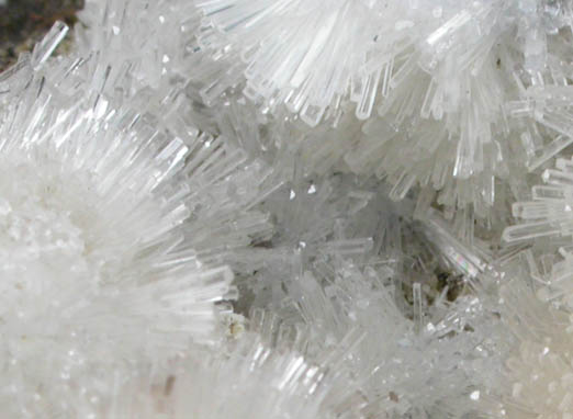| Description: | Shallow cavity in gray basalt lined with acicular transparent colorless natrolite crystals to 4 mm. Ex. Edna D. Doughty (1892-1989) collection #1793 |