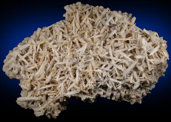 | Description: | Large specimen of translucent white jackstraw-habit cerussite crystals in a complex mass of intersecting crystals. Scattered among the cerussite crystals are microscopic limonite pseudomorphs after unknown acicular mineral (filiform pyrite?). Ex. E. Carmichael collection; ex. Josef Vajdak (Pequa Rare Minerals) |