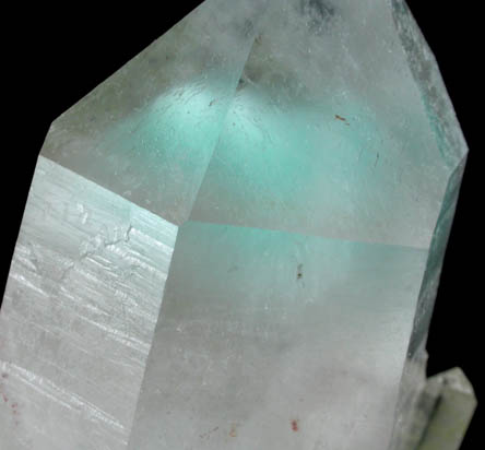 | Description: | Transparent colorless quartz crystals to 65 mm with acicular blue-green ajoite crystals included within the largest quartz crystal. The quartz crystals have silky surface luster making the ajoite crystals difficult to see. collected ca. 1987 |