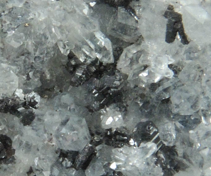 | Description: | Lustrous transparent colorless quartz crystals to 2 mm covering one face of matrix with many gray-metallic cubic galena crystals to 4 mm and small dark-gray wurtzite crystals to 2 mm which may be sphalerite pseudomorphs after wurtzite. Ex. Thomas A. Penney (1934-2019) collection #190, collected in the 1970s by a construction worker at the site. |