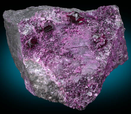 | Description: | Lustrous transparent violet-colored kammererite crystals, the chrome-rich variety of the mineral clinochlore, to 5 mm on one face of gray matrix. |