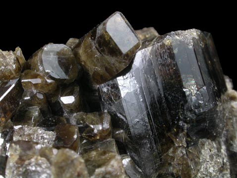 | Description: | Lustrous prismatic translucent greenish-brown vesuvianite crystals on massive crystallized vesuvianite. This famous vesuvianite locality was first described in 1848 and is now closed to collecting. Ex. Thomas A. Penney (1934-2019) collection #396 |
