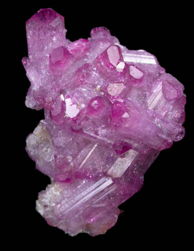 | Description: | Lustrous prismatic transparent vesuvianite crystals with complex terminations and striated prism faces. The vesuvianite crystals have medium-purple color with deeper purple color at the terminations. |