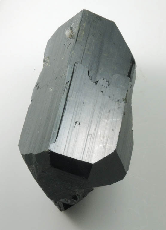 | Description: | Doubly-terminated dark-green twinned epidote crystals with lustrous prism faces and satin luster on some termination faces. These are twinned epidote crystals on the {100} plane with the twin plane distinctly visible on the terminations. |