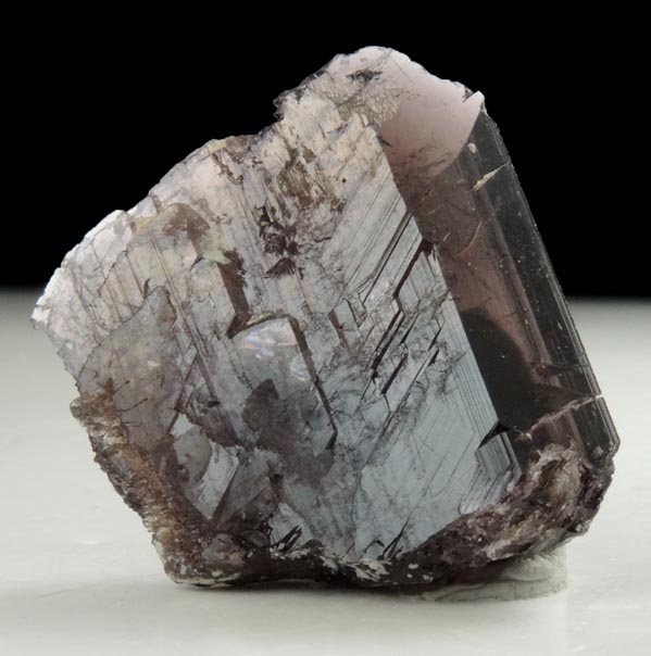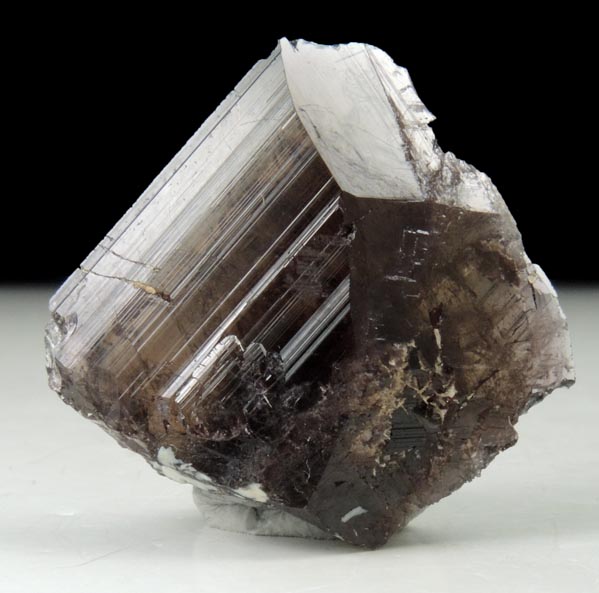 | Description: | Lustrous transparent brown axinite crystal with glassy crystal faces front and rear with beveled edge faces. The axinite crystal has remnants of the light-colored matrix on the edges where it intersected the cavity walls. |