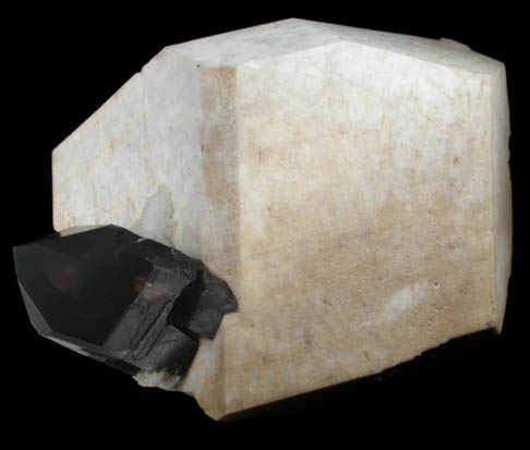| Description: | Large pristine microcline crystal with a small group od lustrous transparent smoky quartz crystals on one edge. Ex. Roy A. Smith (1935-2014) collection, collected ca. 1960. |