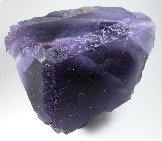 | Description: | Large lustrous transparent-to-translucent purple cubic fluorite crystal with banded internal zoning following the octahedral planes. The fluorite crystal has prominent dodecahedral faces on the edges that are composed of smaller etched cubic faces. |