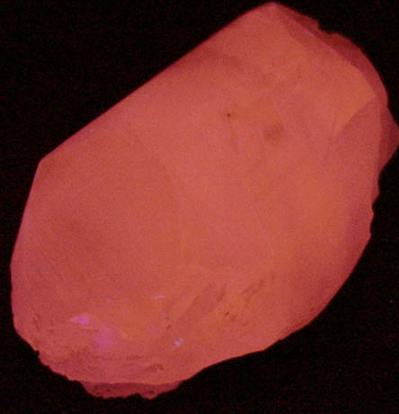 | Description: | Lustrous transparent colorless calcite crystal with striated crystal faces. Remnants of greenish matrix are included on one end of the calcite crystal. The calcite fluoresces orange under SW UV illumination. Ex. B. Gaber collection #2207 |