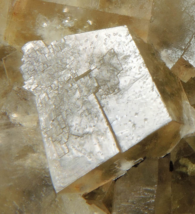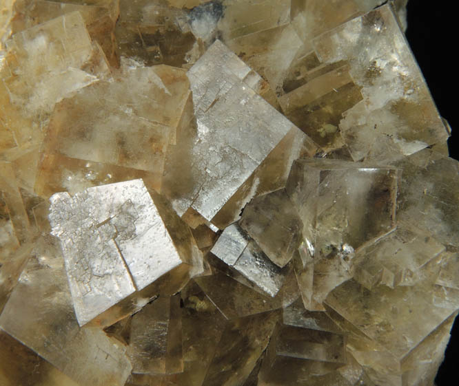 | Description: | Lustrous transparent yellow cubic fluorite crystals that are interpenetrant-twinned. The fluorite crystals have subtle crystallization patterns on the surfaces that give them slightly silky luster. The fluorite fluoresces violet under SW UV illumination. |