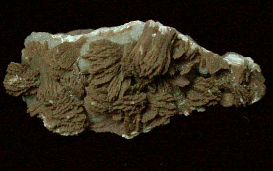 | Description: | Plumose formations of translucent brown bladed barite crystals to 8 mm over transparent pale-yellow rhombohedral calcite crystals to 1 mm on one face of gray matrix. The calcite fluoresces white under SW UV illumination. Ex. W. Keller #6294; ex. N. A. Zachariades collection |