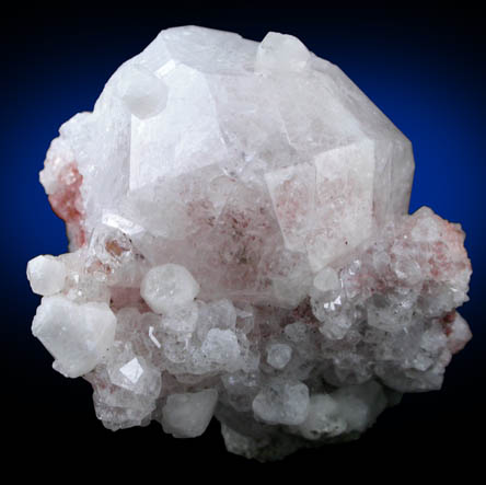 | Description: | Lustrous transparent-to-translucent trapezohedral analcime crystals to 19 mm with a few translucent white calcite crystals to 3.5 mm which are easily identifiable because they fluoresce orange under SW UV illumination. Ex. W. Keller #9451; ex. P. Freeman (UK) |