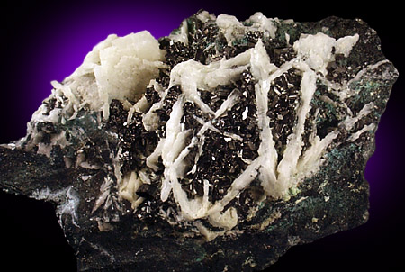 | Description: | Classic white barite blades with sharp lustrous black enargite crystals to 4 mm scattered between. A very good large cabinet specimen. Ex. Cilen # 2655 |