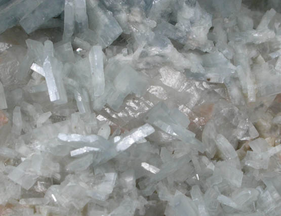 | Description: | Lustrous transparent bladed blue-gray barite crystals to 15 mm almost completely covering lustrous translucent colorless scalenohedral calcite crystals to 55 mm over transparent yellow cubic fluorite crystals to 10 mm. |