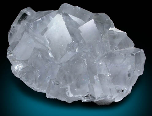 | Description: | Lustrous transparent cubic fluorite crystals that are nearly colorless but have internal phantom-growth zones of blue-gray color in concentric layers visible when viewed straight on axis. |