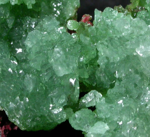 | Description: | Lustrous transparent green conichalcite crystals covering all surfaces of brown limonite gossan. Ex. Fay M. Pough collection in 1969 |