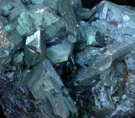 | Description: | Platy metallic chalcocite crystals with dark coating of iridescent chalcopyrite-bornite on the surfaces. The chalcocite crystals are well crystallized on all sides of the cluster. For locality information see: The Flambeau Mine in RM v.72 #5. |