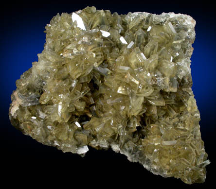 | Description: | Lustrous transparent yellow-gray barite crystals covering one face of gray barite-rich matrix. The barite crystals are tabular rhombohedral form and have faint internal phantom-growth zones. |