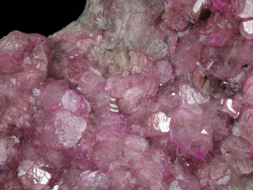| Description: | Lustrous transparent violet-colored cobalt-rich calcite crystals lining a shallow cavity in brown matrix. The calcite crystals are flattened rhombohedral form with deepest color in the outer zones of the crystals. |