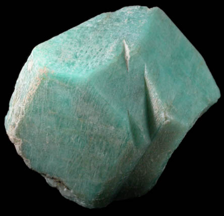 | Description: | Blocky amazonite crystals, the green variety of microcline feldspar colored by trace lead impurities, in parallel orientation with no matrix attached. Ex. B. Gaber collection #2356 |