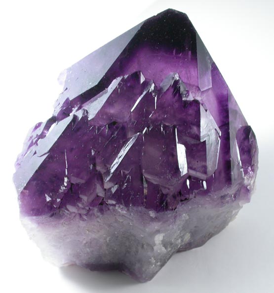 | Description: | Lustrous transparent purple amethyst quartz crystals in parallel orientation. The amethyst crystals have internal phantom-growth zones of deeper purple color and spherical red-brown microscopic hematite inclusions in the termination faces. Collected ca. 1950 |