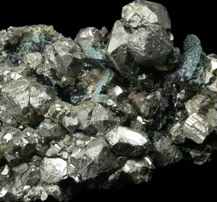 | Description: | Lustrous yellow-metallic pyrite crystals on black magnetite with minor acicular green byssolite variety of actinolite. The pyrite crystals are a combination of octahedral form and pyritohedral form. Remnants of glue on the rear where it was mounted. Ex Jeff Weissman collection #487; ex. Betts #6351; ex. Sahno Collection |