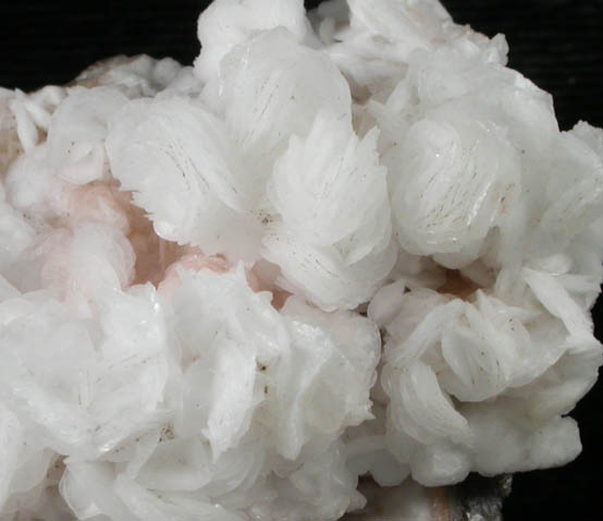 | Description: | Thin platy translucent white barite crystals to 7 mm overgrown on an earlier generation of transparent barite crystals that are only visible on the bottom surface. The barite crystals are in rosette-shaped aggregates to 10 mm across. Ex. W. Keller #590 |