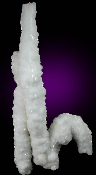 | Description: | Lustrous translucent white barite crystalline stalactitic formations with no matrix attached. One barite stalactite is curved completely around. The radiating structure of the barite crystals is visible on the exposed ends. Ex. W. Keller #6137; originally acquired from Neal A. Pfaff (1947–2013) |