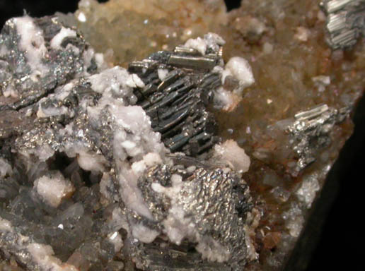 | Description: | Lustrous metallic krennerite crystals to 2.8 mm on translucent quartz crystals to 0.5 mm with rounded rosettes of an unidentified translucent white mineral, possibly dolomite or calcite. Ex. B. Gaber collection; ex. Paul Pohwat collection #586 (Mineral Collection Manager at Smithsonian) |