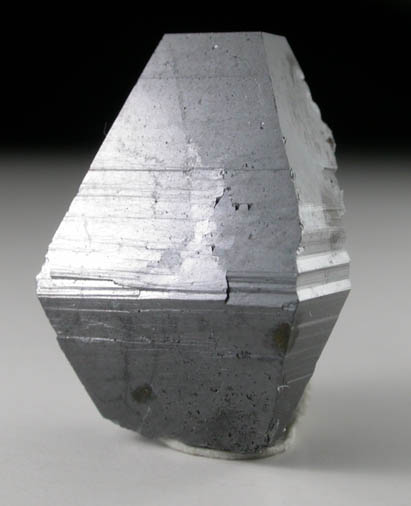 | Description: | Large di-pyramidal dark blue-black anatase crystal with finely striated crystal faces on the front and cleavage faces on the rear where it was originally attached. The anatase crystal shows translucency in a thin area near the bottom corner. Collected ca. 1995 |
