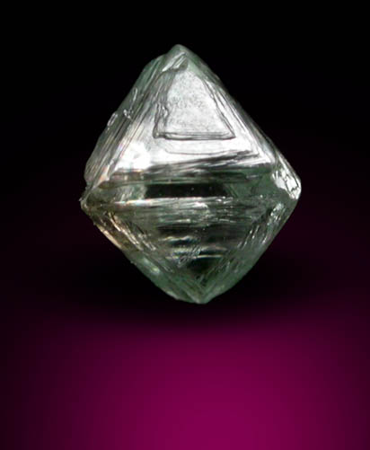 | Description: | Lustrous transparent natural diamond crystal with octahedral form modified by striated parallel edges faces. Internally the diamond has a rare green color with a few cleavage flaws and but has no inclusions. |