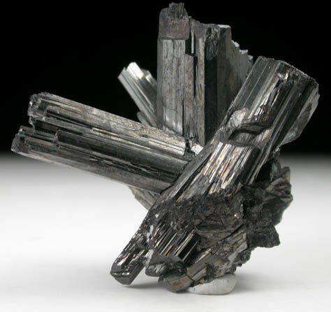 | Description: | Several intersecting lustrous black manganite crystals with striated prism faces and complex terminations composed of many smaller parallel crystal faces. One of the manganite crystals was restored into position but no glue is visible. Restored |