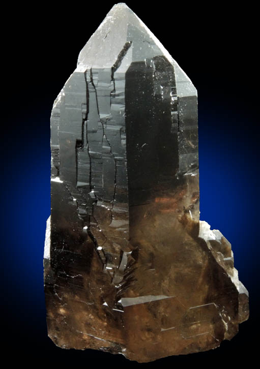 | Description: | Transparent smoky quartz crystal with lustrous faces that have suture patterns indicating it is twinned following the Dauphiné Law of quartz twinning. Internally the smoky quartz crystal is near flawless. Select rear faces have a muscovite coating. Ex. Thomas A. Penney (1934-2019) collection, collected in the 1960s-70s |