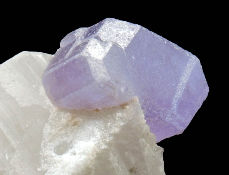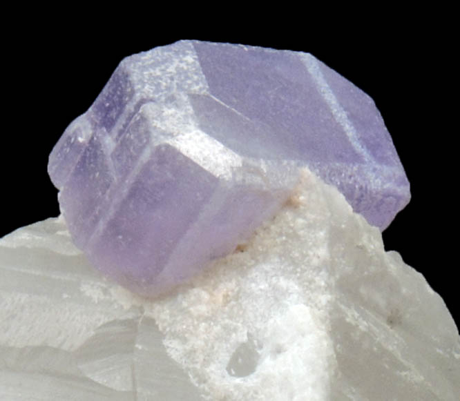 | Description: | Translucent purple 13 mm fluorapatite crystal perched on the termination of translucent gray 38 mm quartz crystal. The fluorapatite crystal has silky luster and is tabular hexagonal form with secondary edge faces. |