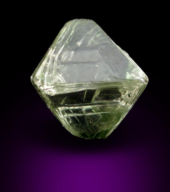 | Description: | Lustrous transparent octahedral natural diamond crystal with flat crystal faces and compound edges composed of stacked octahedral faces. The diamond crystal has excellent green color with no visible flaws or inclusions. Several corners are chipped. |