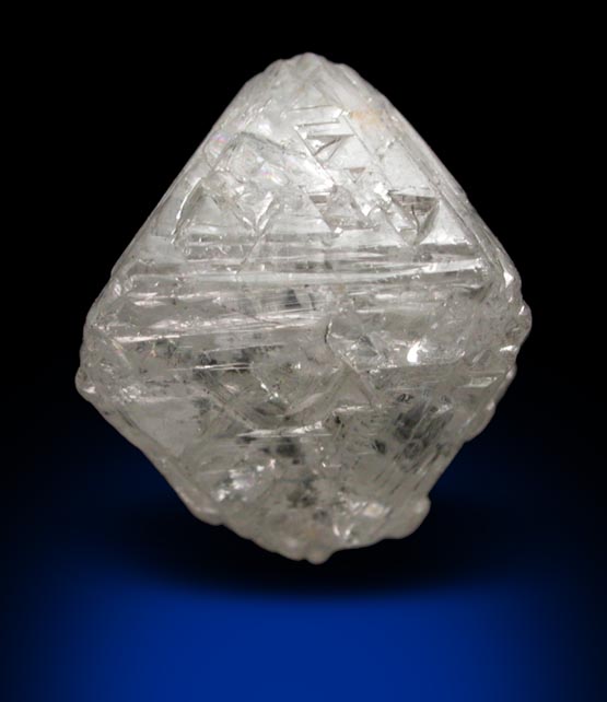 | Description: | Lustrous transparent pale gray natural diamond crystal that is flawed with fractures and inclusions. The diamond crystal is octahedral form with complex crystallization patterns on the faces and edges. A large entry-level diamond for collectors. |