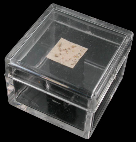 | Mineral: | Gold crystals in micromount box |