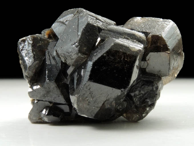 | Description: | Double-sided cluster of lustrous dark cassiterite crystals. The cassiterite crystals appear black, but exhibit transparent yellow-brown internal color when illuminated from the rear. Some of the cassiterite crystals are coated with pyrite microcrystals. Ex. W. Keller #319 |