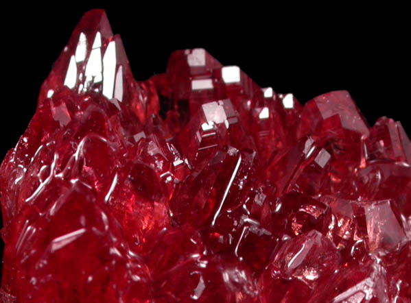 | Description: | subparallel cluster of elongated lustrous transparent red rhodochrosite crystals with no matrix attached. The rhodochrosite crystals are scalenohedral form with some crystals exhibiting rhombohedral tips on the terminations. Excellent red color. Collected ca. 1960 |
