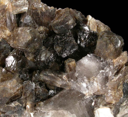 | Description: | Lustrous translucent dark-brown stilbite crystals on partial crystals of translucent smoky quartz. The stilbite crystals are elongated bladed form in aggregates of parallel crystals to 3 mm thick. Collected in 1995 by John Lawson (1942-2024) and Robert Lawson |