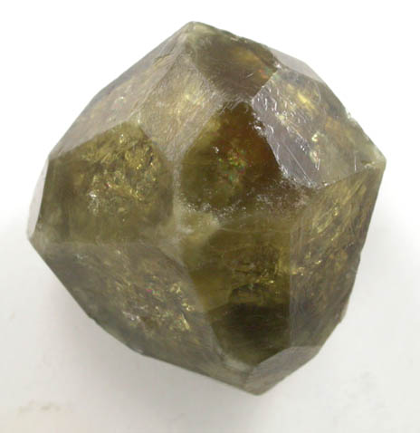 | Description: | Lustrous translucent-to-transparent olive-green grossular garnet crystal with remnants of matrix included in the bottom where it was attached. The grossular garnet crystal is trapezohedral form with dodecahedral corner faces. |