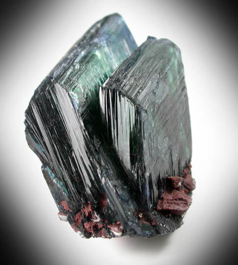 | Description: | Lustrous transparent blue-green vivianite crystals with remnants of brown matrix on the bottom. The vivianite crystals are bladed form, in aggregates of parallel crystals, with simple angles terminations. The vivianite shows color change when rotated. |