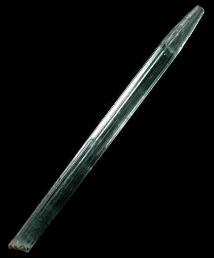 | Description: | Lustrous transparent pale-blue aquamarine crystal, the blue-green gem variety of the mineral species beryl, with hexagonal crystal form. The aquamarine crystal exhibits the tapering form in the 12 mm which is typical for this famous locality. |