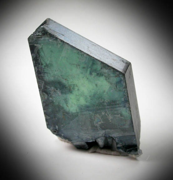 | Description: | Lustrous transparent green vivianite crystal with no matrix attached. It appears that the broad faces of the vivianite crystal are cleavage faces. |