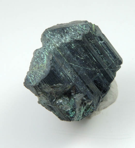 | Description: | Gray-metallic chalcocite crystal with no surrounding matrix. The chalcocite crystal has lustrous striated prism faces with complex termination coated with green chrysocolla. This is a large chalcocite crystal from this seldom-collected locality. Collected by Kurt Hennig ca. 1990 |