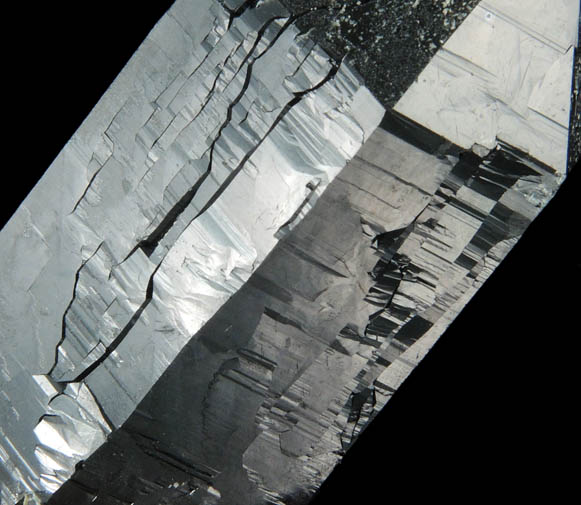 | Description: | Lustrous dark smoky quartz crystal with prism faces that have suture patterns indicating that it is twinned following the Dauphiné Law of quartz twinning. Some faces of the smoky quartz crystal have a thin coating of yellowish muscovite mica. Ex. Thomas A. Penney (1934-2019) collection, collected in the 1960s-70s. |