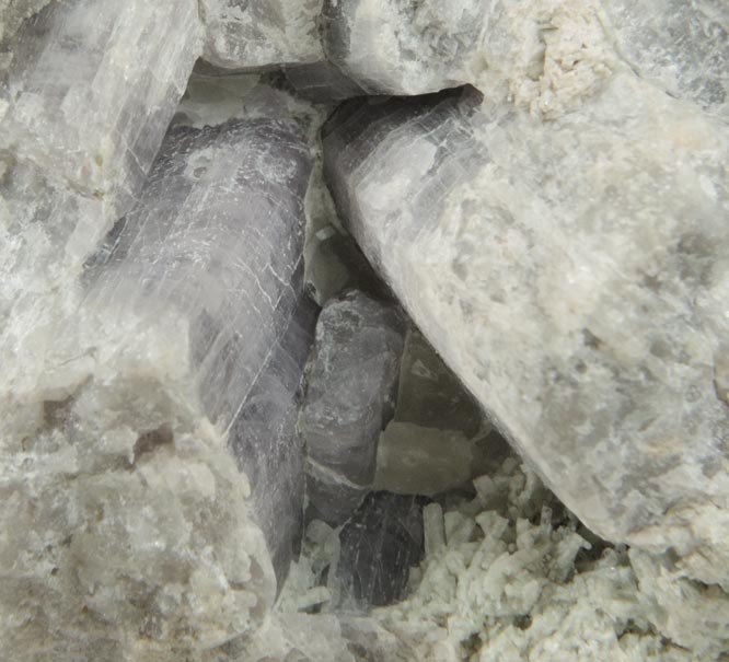 | Description: | Lustrous translucent purple scapolite crystals lining a cavity in massive scapolite. None of the scapolite crystals are terminated because they intersected other crystals or the cavity walls. The scapolite fluoresces slightly under SW UV illumination. Ex. Irving Horowitz collection #2329 |