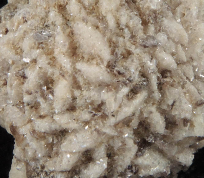 | Description: | Spherical cluster 14 mm diameter of radiating transparent colorless prismatic stokesite crystals to 5 mm intergrown with smaller translucent tan-colored microlite microcrystals that are visible under 20x. |