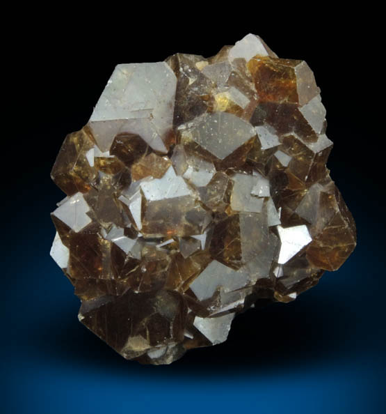 | Description: | Lustrous transparent greenish-brown dodecahedral andradite garnet crystals on massive andradite matrix. This specimen has better transparency than commonly found at this classic locality. |