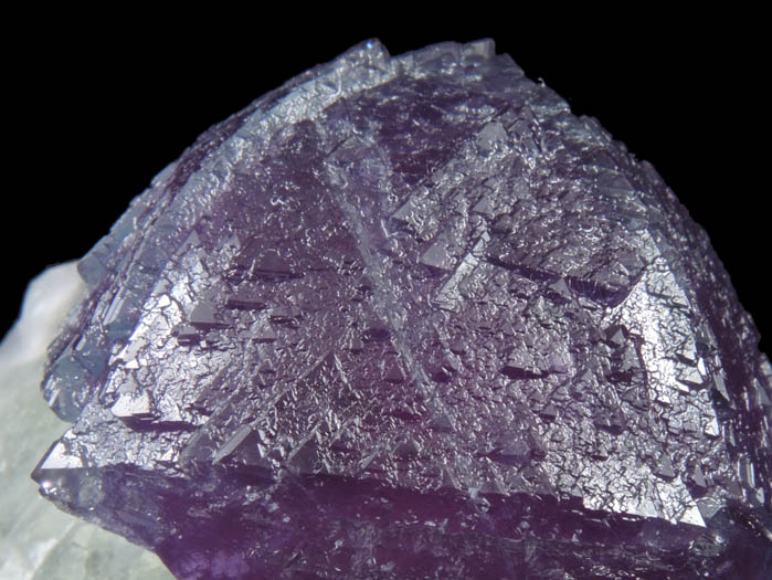 | Description: | Lustrous bi-colored convex octahedral fluorite crystals with surfaces composed of many smaller subparallel octahedral faces overgrown on an earlier generation of green fluorite. The fluorite crystals are transparent purple with thin blue outer zones. |